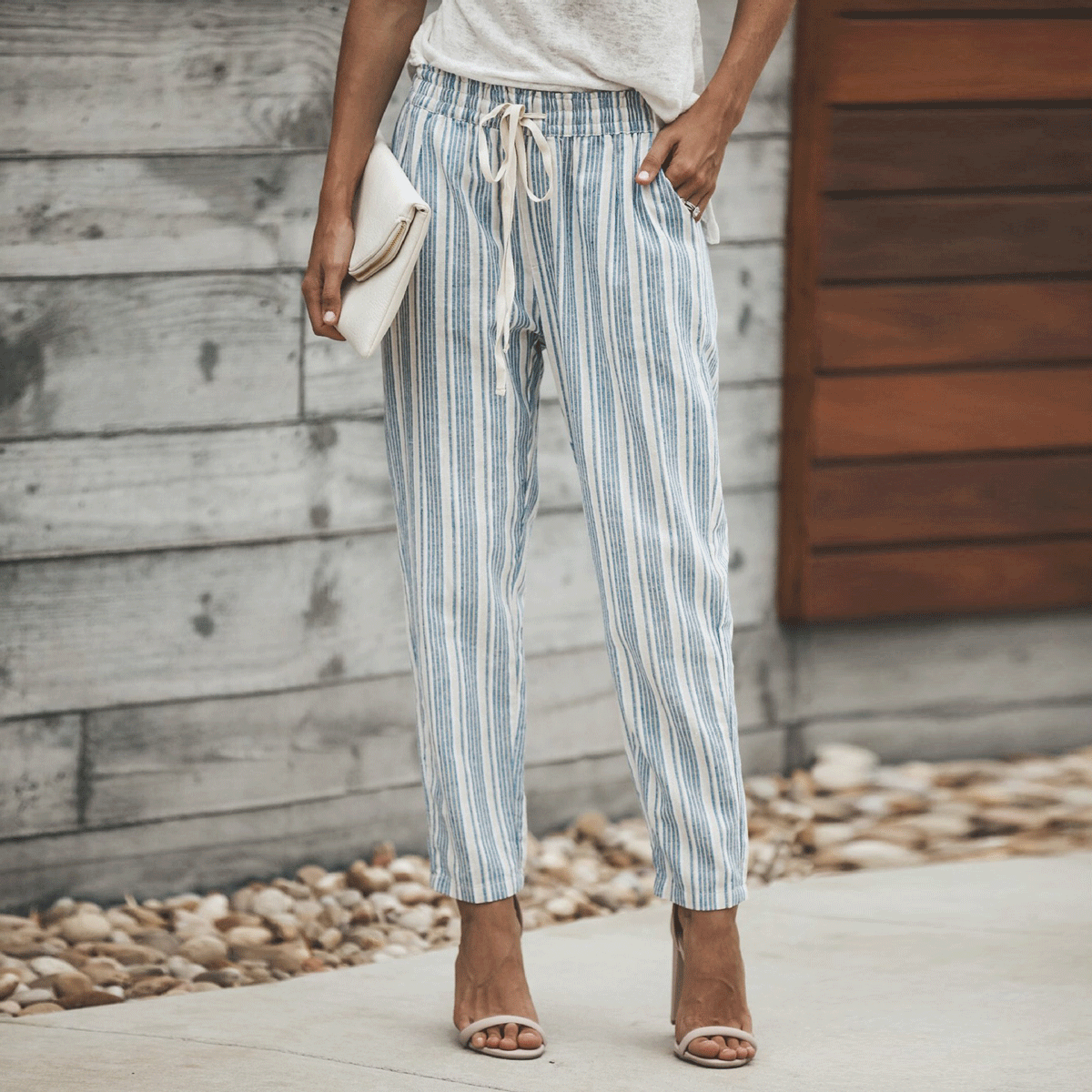Blue And White Striped Linen Pants