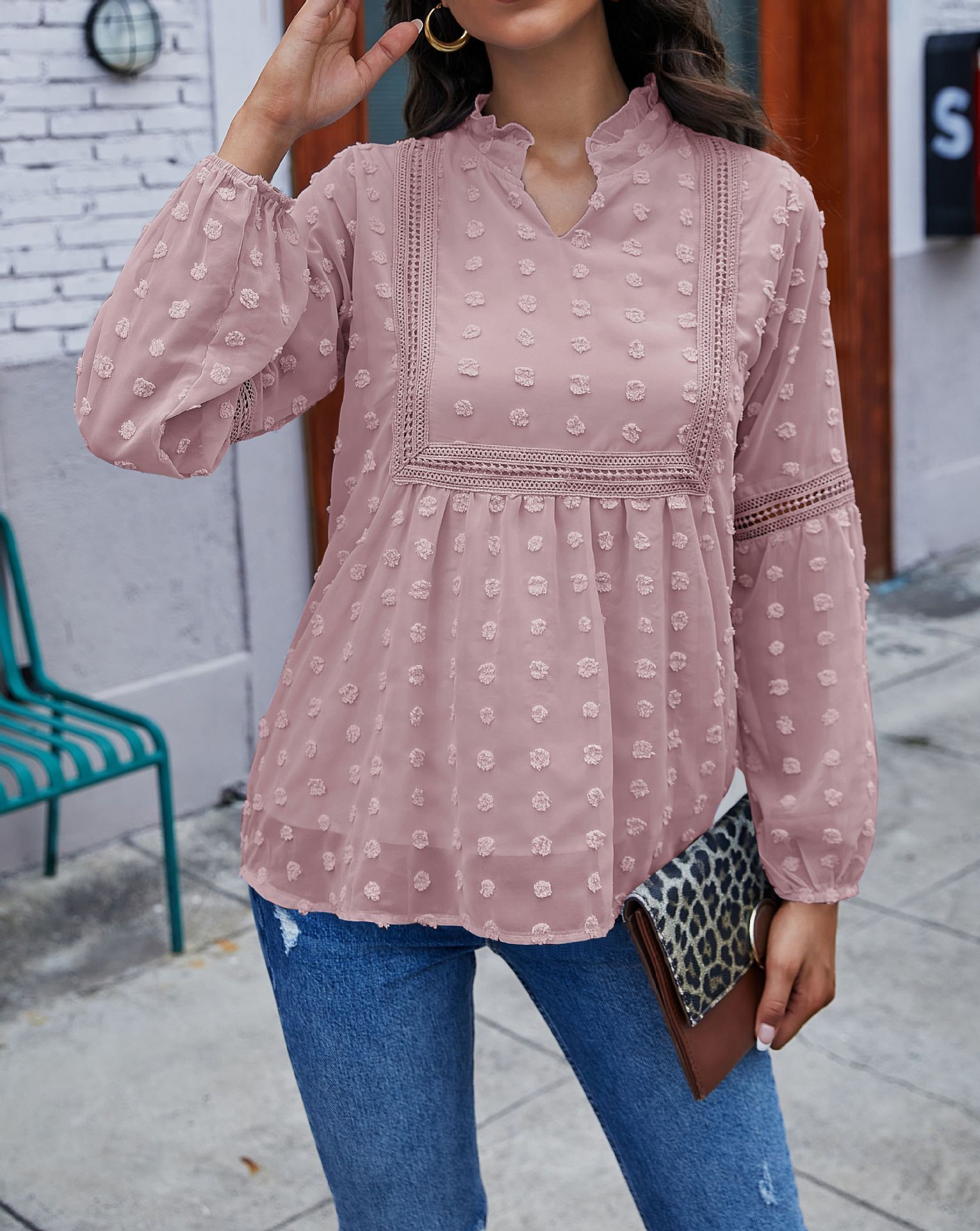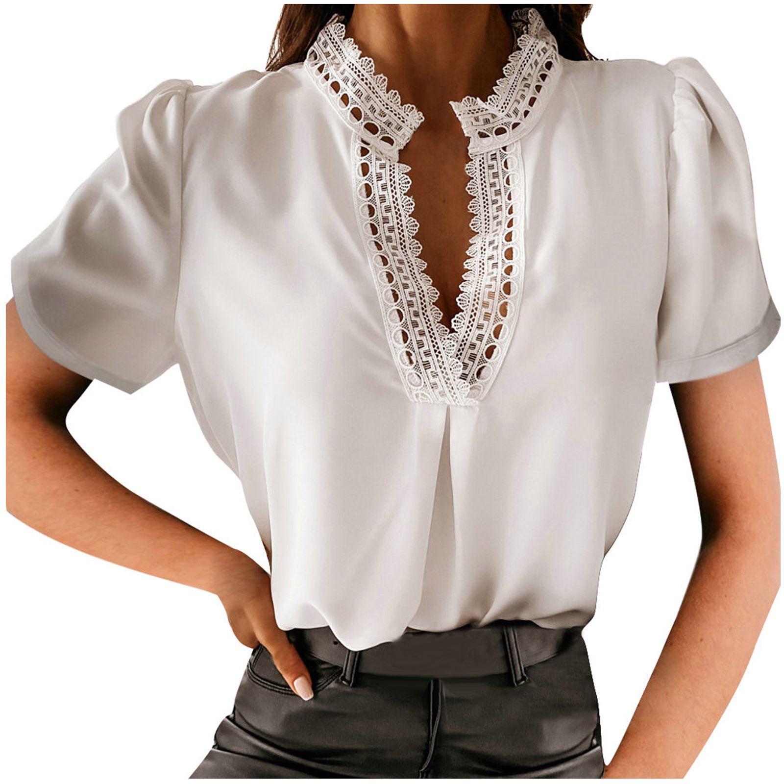 Купить: Women's Blouse Elegant Lace Ruffles Chiffon Shirts Spring Autumn Office