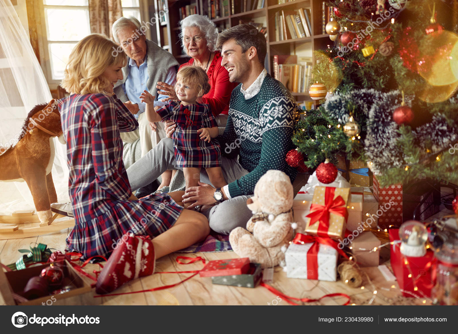 Family Photos In Front Of Christmas Tree