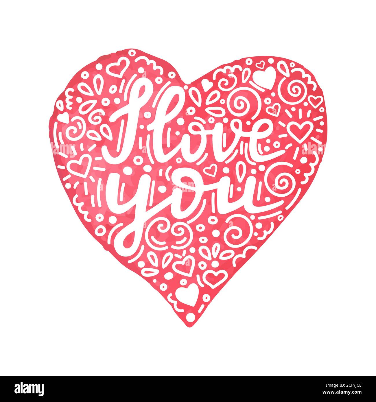 I love you hand written quote in watercolor hand drawn heart with floral ornamen