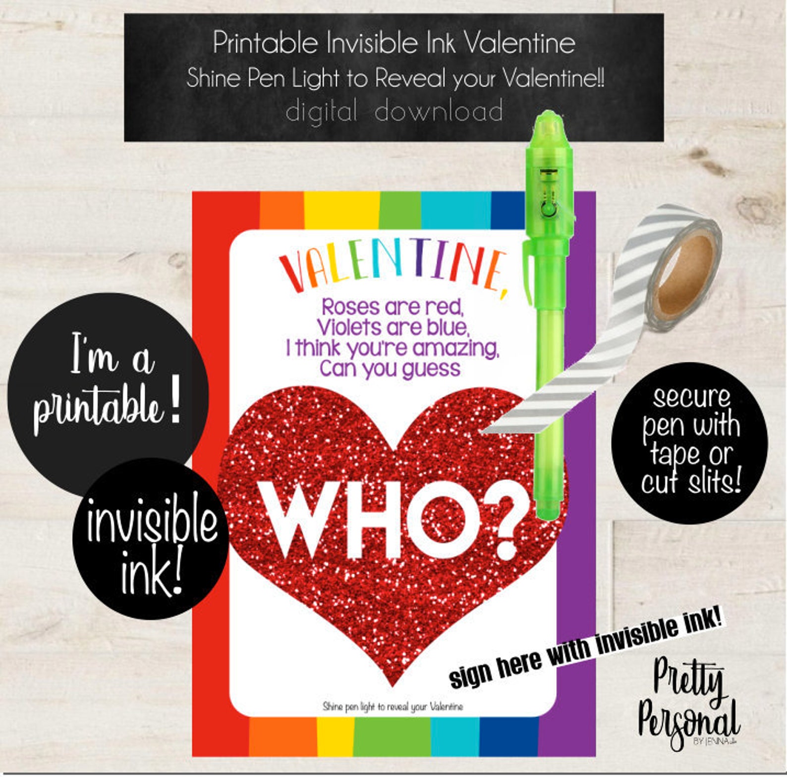 DIY Rainbow Invisible Ink Pen Valentine Card sugar free fun Etsy