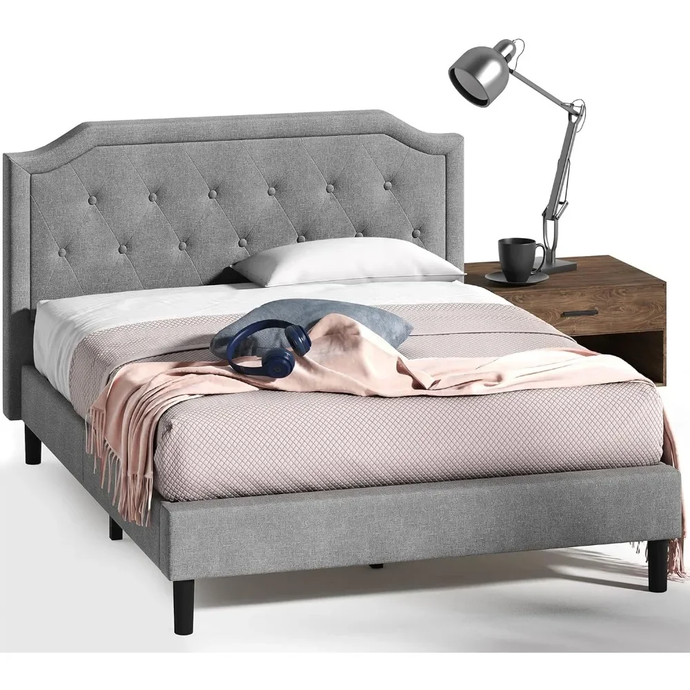 Modern Queen Or King Scalloped Platform Bed Gray Grey Linen Silver Nail Head