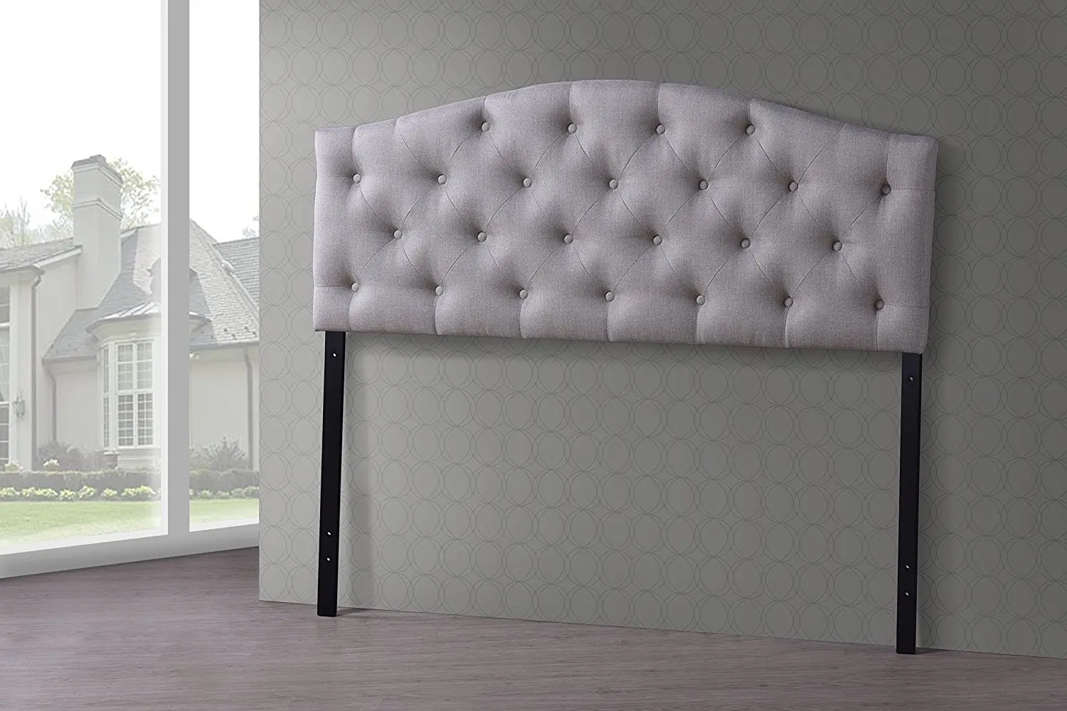 Linen Upholstered King Bed with Scalloped Tufting Big Lots